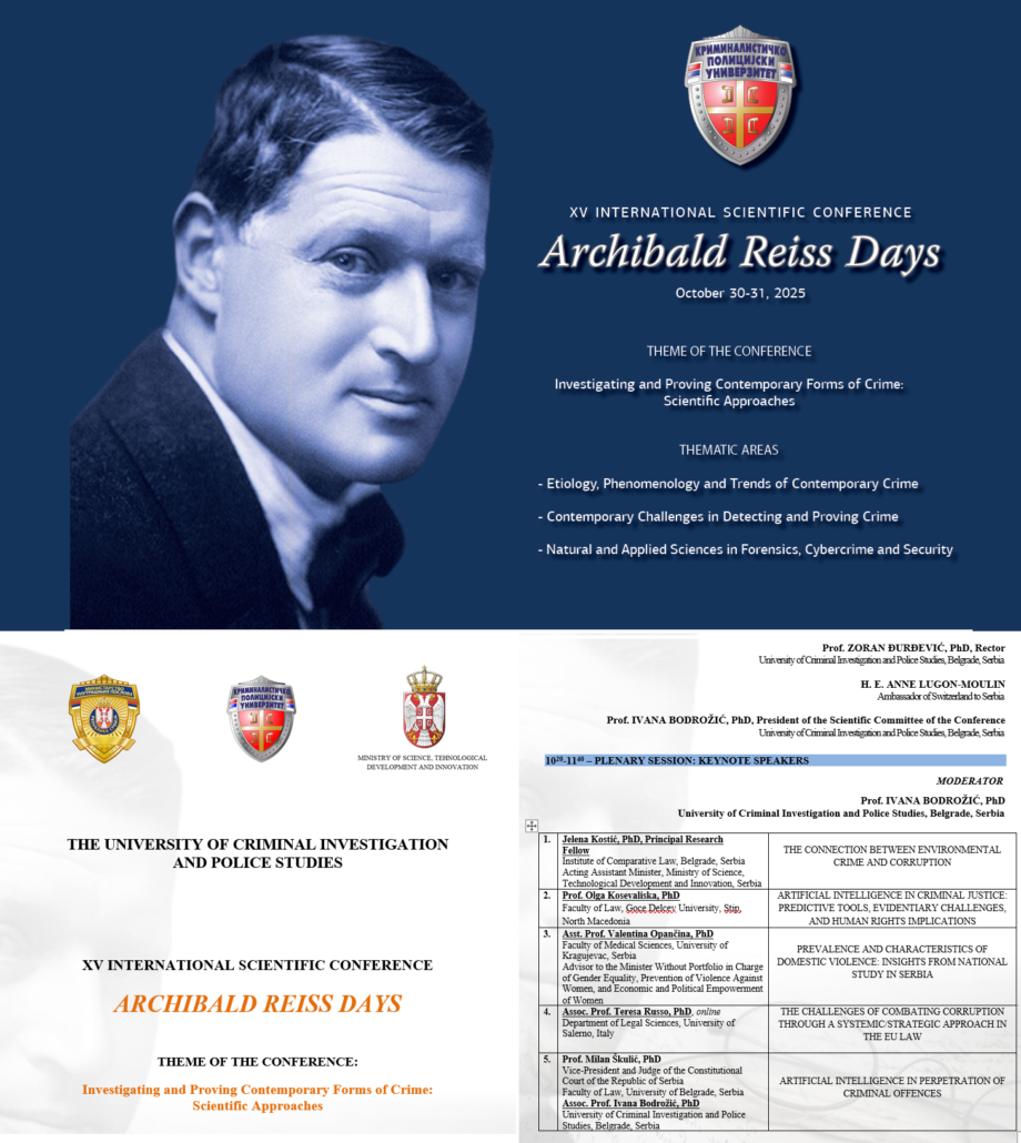 On Thursday, October 30, Professor Teresa Russo, Director of the EUVALWEB Legal Observatory, was one of the keynote speakers at the plenary session of the XV Archibald Reiss Days International Scientific Conference on “Investigating and Proving Contemporary Forms of Crime: Scientific Approaches,” organised by the University of Criminal Investigation and Police Studies of Belgrade with the support of the Ministry of Interior and the Ministry of Science, Technological Development, and Innovation of the Republic of Serbia in cooperation with a number of universities from Europe.